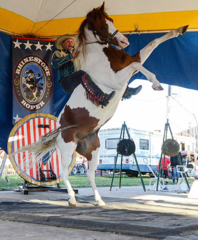 The Rhinestone Roper Show is a death-defying interactive Wild West Show that has entertained and thrilled audiences across the country for over 20 years. Dan and Yvonne Mink are expert performers in the classic Wild West skills of trick roping, bullwhip cracking, knife throwing, gun spinning and fast draw shooting. Dan has 10 World Championship Titles and the show has received multiple awards. Featured in the show are stunts by amazing trick horses Gypsy Rio and Ginger Mesa. You may have seen them make the Quarter Finals on "America's Got Talent" with their breath-taking "Wheel of Death" knife throwing routine.